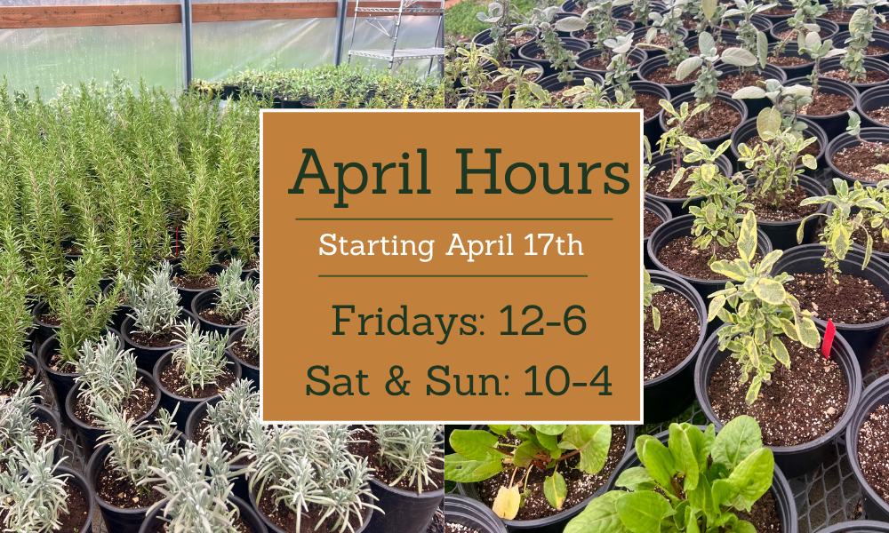 The store is currently for the winter season. We will reopen the farm store and nursery on Friday April 17, 2026.